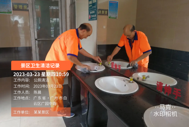 旅游景点保洁人员工作过程管理可以用马克水印相机,马克水印相机拍照,不仅照片上自带不可修改的时间地点等水印信息,而且还能实时同步团队成员,管理人员可在线查看,了解工作情况,大大提升效率。