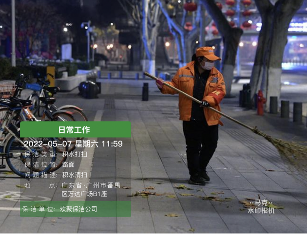 某环卫企业宣传部门经常遇到一个问题,在制作宣传背景的时候,环卫工人提供的图片不清晰,导致宣传背景制作出来效果并不好,宣传部门工作人员只能自已去拍素材,非常浪费时间,工作效率低下。后来公司要求环卫工人用马克水印相机拍照,不仅能高清拍照,还在实时上传云端共享团队成员,大大节省很多时间,工作效率也提升了,最重要是制作宣传图片只需要一键生成。