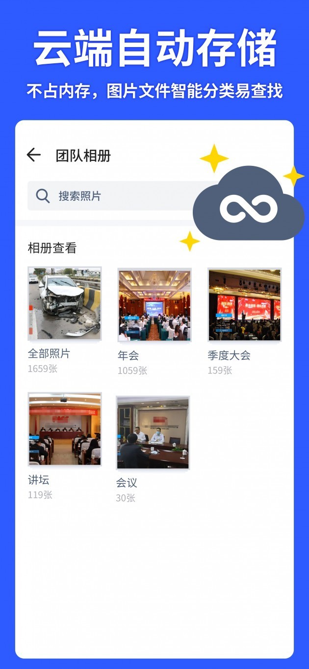 马克水印相机拍摄的高清照片都会自动永久免费存储在云端,不占用手机内存,并且这些照片能够根据水印的信息进行自动的分类,也可以根据水印信息进行查找搜寻,极大提升了效率。