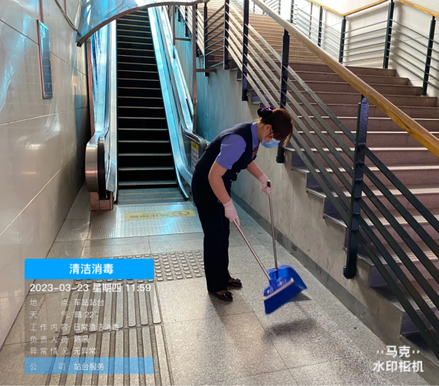 随着智能手机的普及,拍照已经成为很多行业监督工作的方式,对候车大厅保洁也不例外。用马克水印相机拍照,照片上时间地点等水印信息,并且不能修改,确保照片的真实性。管理人员可实时通过照片查看保洁的工作情况,大大提升管理效率。