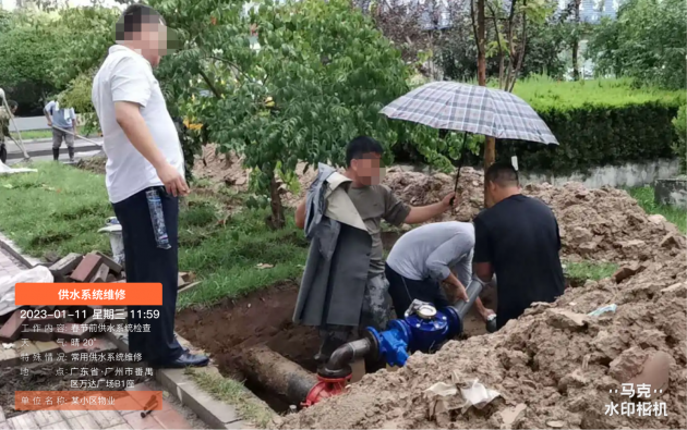 原标题:小区物业春节值班排水系统维修现场取证常用的水印相机