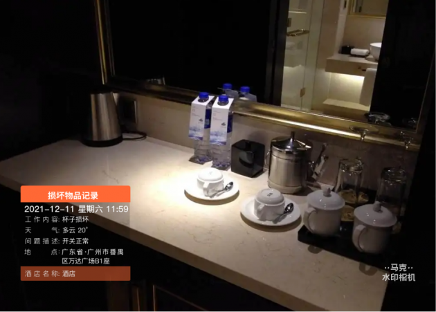 原标题:住宿清洁人员损坏物品记录现场取证好用的水印相机(案例分享)