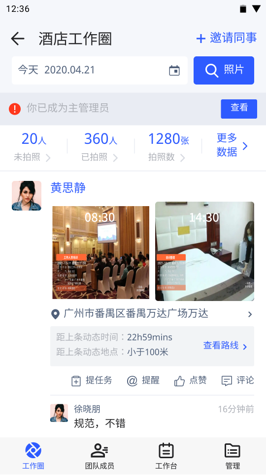 马克水印相机拍摄的照片可以自动同步团队,并且水印照片自动同步团队后,很好的解决照片甩微信群,很乱不容易查找的痛点。只需要翻看团队的照片即可了解当日的工作情况,并且团队内还可以进行任务的指派,使得整个工作环境形成闭环,每件事情都能轻松跟进。在传统团队管理中,人员时常要拍照报备自己的工作情况,但是人数太多照片容易丢失或查找不便,工作汇报成为员工负担,对此,马克水印相机的团队工作圈可以有效解决这类工作汇报问题。