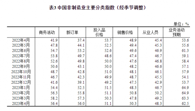 业务活动预期指数为62.5%,比上月下降0.8个百分点,持续位于高位景气区间,表明非制造业企业对近期市场恢复发展保持乐观。分行业看,建筑业业务活动预期指数为64.1%,比上月上升0.4个百分点;服务业业务活动预期指数为62.3%,比上月下降0.9个百分点。