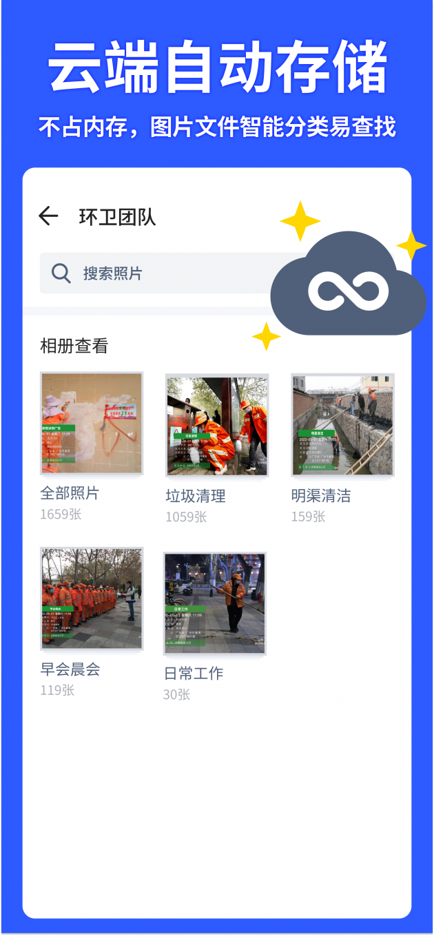 马克水印相机拍摄的高清照片都会自动永久免费存储在云端,不占用手机内存,并且这些照片能够根据水印的信息进行自动的分类,也可以根据水印信息进行查找搜寻,极大提升了效率。按照传统的做法,如果把工作照存在手机里,时间久了就会出现内存不足、查找麻烦等情况,对于这个问题,马克水印相机的智能云端功能可以有效解决。