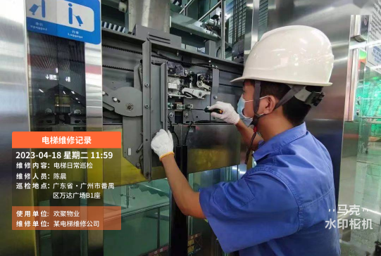 某电梯维保公司维保师傅日常保养经常需要拍照记录当时的情况,但遇到较大的问题是:照片管理非常麻烦,并且还经常弄丢。后该公司管理人员要求维保师傅用马克水印相机拍照,照片自带不可修改的时间地点等水印信息,并且自动上传云端保存,同时,管理人员可实时在线查看,大大提升工作效率。