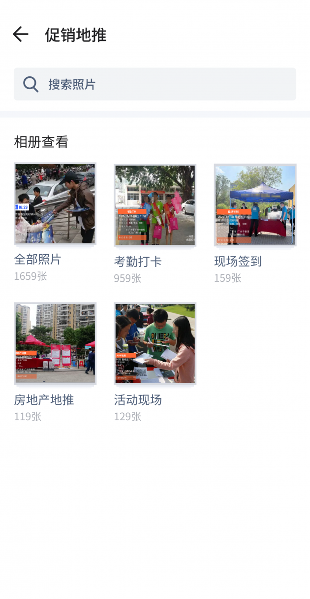 某公司地推业务员考勤都是拍照发群里,这种方式管理效率低下,不仅要核实照片的真实性,统计还很麻烦。该公司使用马克水印相机之后,管理效率大大提升,地推业务员拍的照片自动上传云端,并且自动分类,还能生成统计报表。