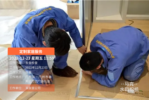 某定制家居公司要求安装师傅在安装前需要检查产品的外观是否完好。安装师傅在检查时经常需要拍照记录,但由于照片太多不好保存,后期想要查找照片时,经常找不到。后用马克水印相机,照片自带时间地点等水印信息,并且自动上传云端保存,一键搜索,方便又简单,大大提升效率。