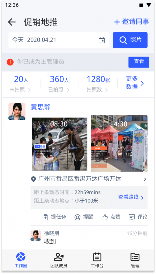 某餐饮推广营销人员定位考勤都是用拍照的形式,到达地点后拍照发微信群里,但是这种方式,照片管理很麻烦,并且容易弄错。后来用了马克水印相机管理,照片自带不可修改的时间地点等水印信息,确保真实性,同时照片还能实时上传云端分类管理,节省很多时间。