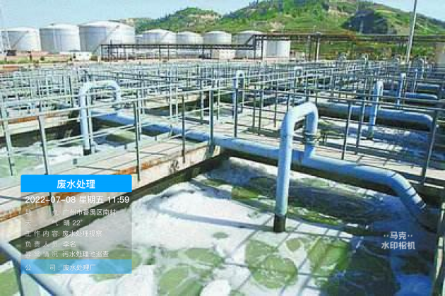 废水处理厂需要对水位观察并记录,避免水位超高或者过低影响污水处理。以往水位观察记录是用表格的形式,但是这种方法只能看到数据,现场情况无法观察。事实上,拍照记录方式更为直观。用马克水印相机拍照记录,照片自带时间地点等信息,能够真实记录现场情况,并且可根据水印信息自动分类上传云端。