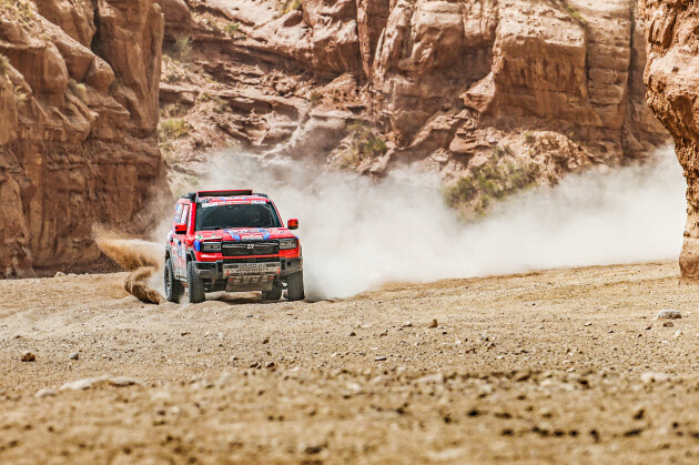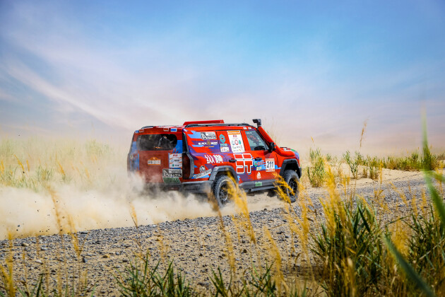 新增的SS2阿拉尔赛段全段穿越塔克拉玛干沙漠腹地,与SS4沙海老兵赛段相同,随时可能遭遇不可预料的沙尘暴天气。纵横G700凭借智能全地形模式、非承载式车身+三把差速锁等全地形越野能力,搭配悬架可MAX140mm,最小离地间230mm,最大320mm,全面保障极端路况下的稳定性与脱困能力。一往无前的车辙,呼啸着撕开沙浪,谱写出属于纵横G700的沙漠进行曲。
