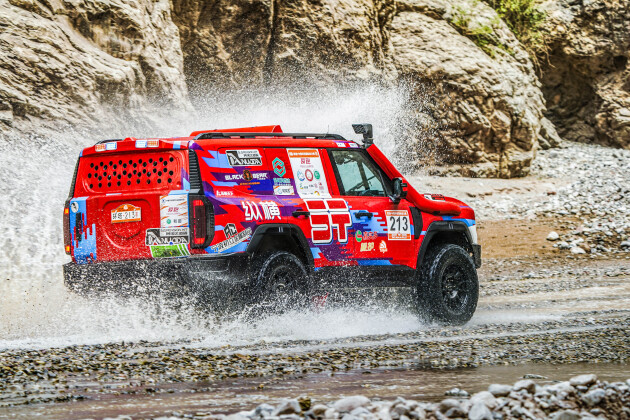 没有退路,唯有前进——这是环塔的生存法则,也是纵横G700的坚守使命。SS3柯坪赛段,穿越戈壁、碎石地带和狭窄涉水峡谷。纵横G700的纵横云台越野底盘与行业首创内高压一体式大梁组成双重防线,提高非铺装持续颠簸路面抓地力和舒适性,在颠簸险途中坚定前行,践行着勇往直前的精神。同时前后轴轮端扭矩可实时智能匹配,动力精准高效传递,在新能源组别中实力领跑。