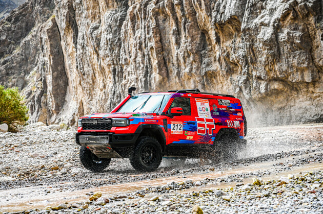 6月1日,2025 环塔拉力赛在麦盖提营地热力收官。历经13天鏖战、约4500公里征途与10个魔鬼赛段,在备受关注的T2.E量产混合动力越野车组,4台纵横G700未上市即参赛,首秀拿下个人亚军,全军团顺利完赛!