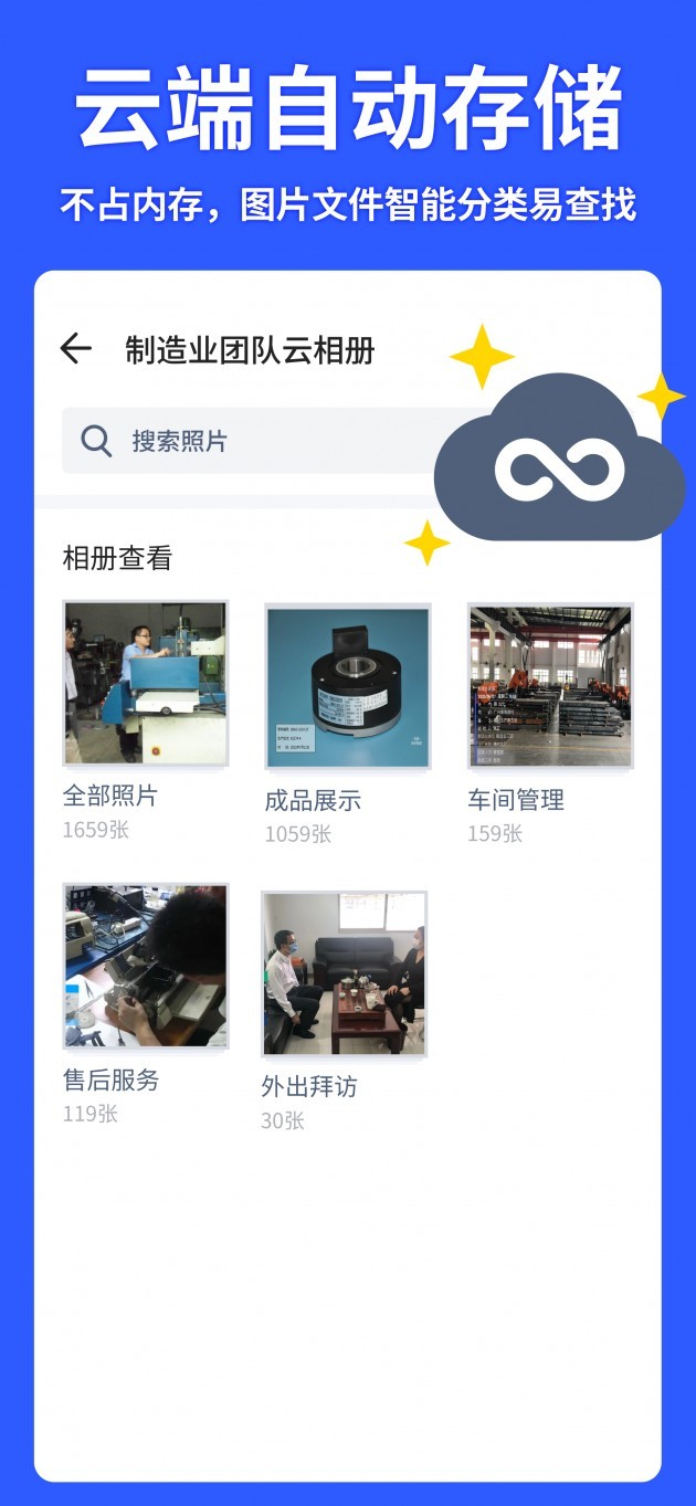 工作中往往都需要用手机拍照,时间久了就会出现内存不足、查找麻烦等情况,对于这个问题,马克水印相机的智能云端功能可以有效解决。拍的高清照片、视频都会自动、免费存储到云端,并且这些都会根据水印类型、水印信息进行自动的分类存储,不但不占手机内存,而且特别容易查找,通过水印上的信息可以进行查找,非常方便。